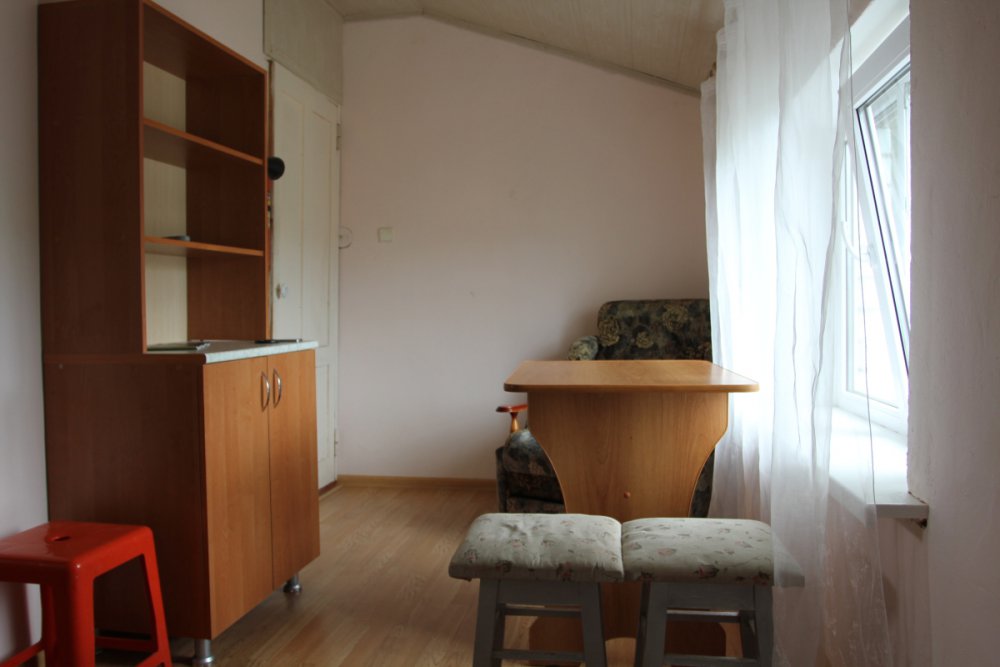 Окна выходят на западную и южную стороны на улицу, вид на сад пансионата «Приморский»